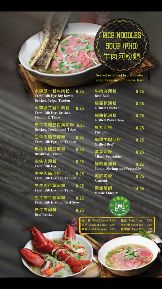 Most popular Estimated cost: $. Rice noodle soup ribeye brisket tendon and tripe served with basil sprouts and lemon